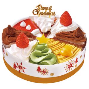 別添苺2個 ●ろうそくは付属しておりません 直径約18cm 6種類の味が楽しめるパーティーにぴったりのクリスマスケーキです。(苺ショート2個、チョコケーキ2個、マロンケーキ1個、チーズスフレ1個、ベリーのケーキ1個、抹茶のケーキ1個) 特定原材料/小麦・卵・乳成分