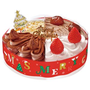 別添苺2個 ●ろうそくは付属しておりません 直径約18cm 4種類の味が楽しめるパーティーにぴったりのクリスマス ケーキです。(苺ショート2個、チョコケーキ2個、チーズケーキ2個、マロンケーキ2個) 特定原材料/小麦・卵・乳成分