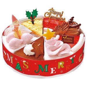 ●ろうそくは付属しておりません 直径約18cm クリスマスらしい飾り付けがかわいらしいパーティーにぴったりのアソートケーキです。(苺風味クリームケーキ2個、ベリーのケーキ2個、チョコケーキ2個、チーズケーキ1個、チーズスフレ1個) 特定原材料/小麦・卵・乳成分