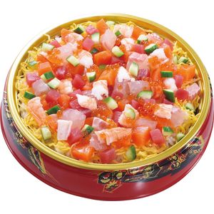 約2人前 まぐろ・サーモン・真鯛・蒸し海老・いくら・きゅうり・錦糸玉子 彩り豊かな海鮮ちらし寿司。 特定原材料/小麦・卵・えび